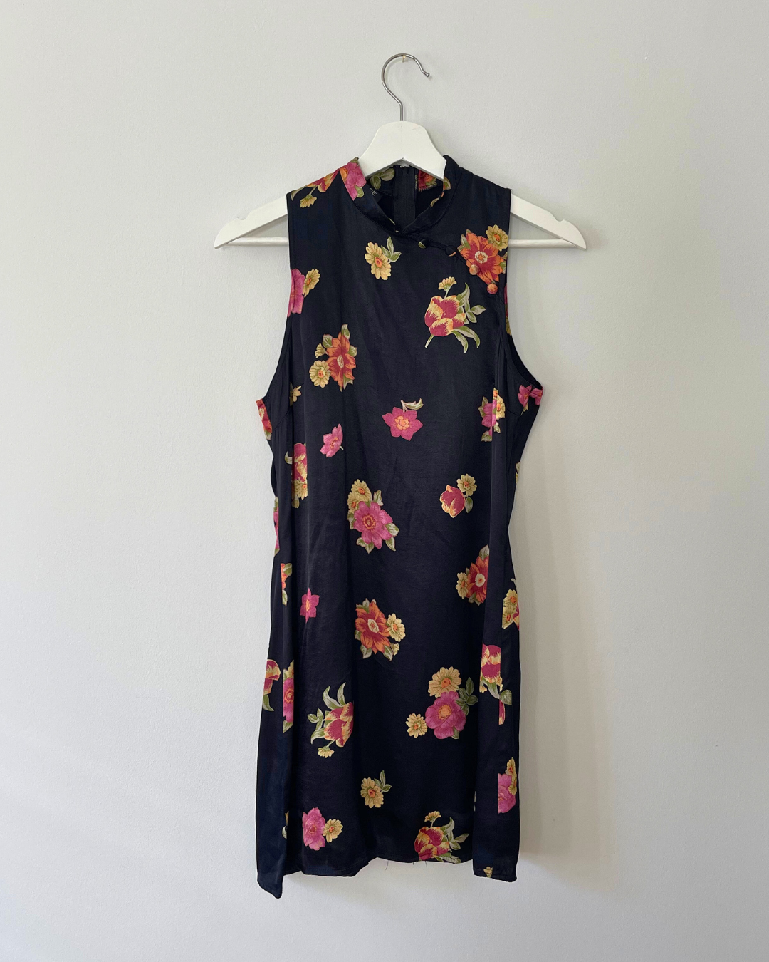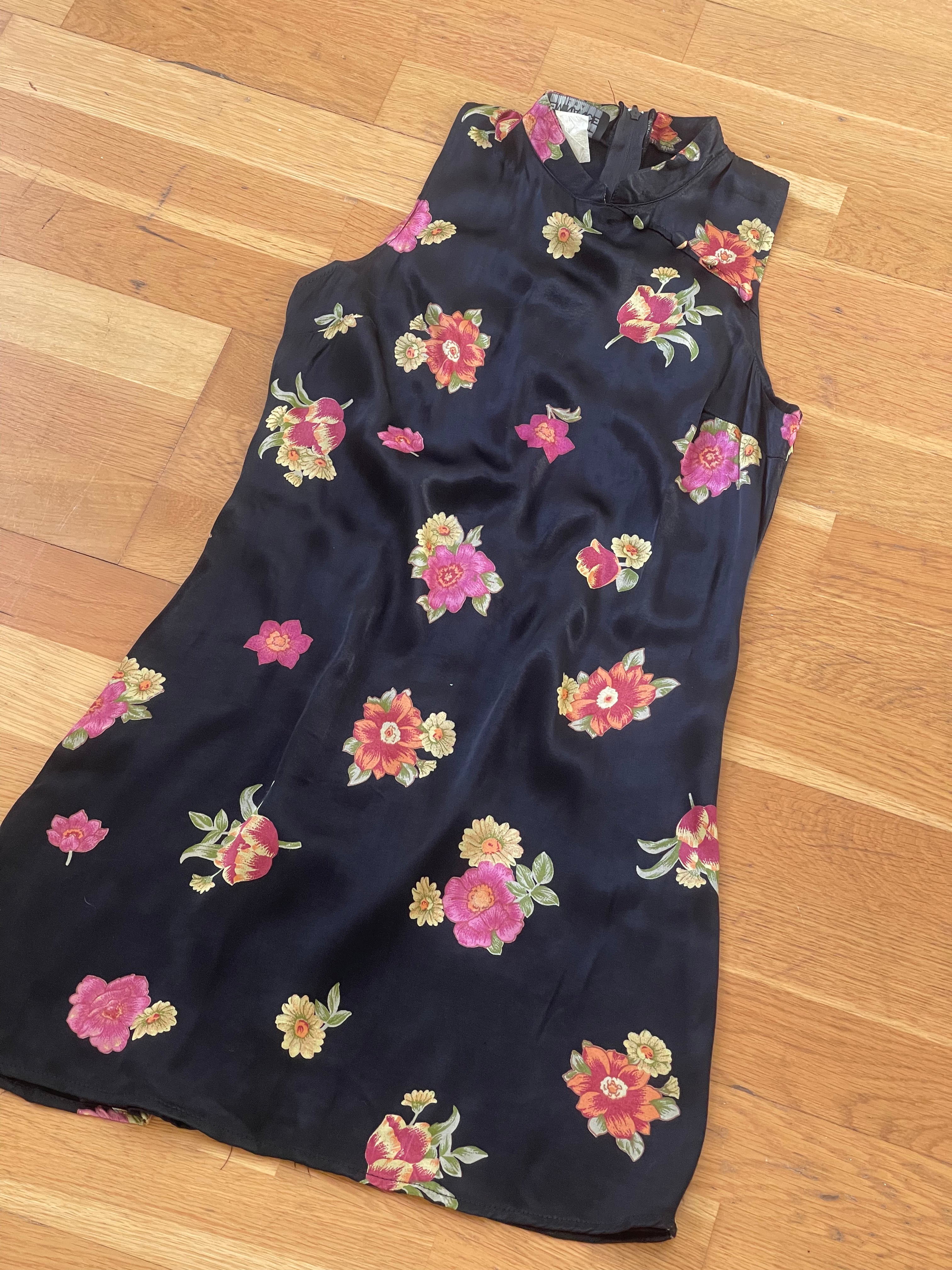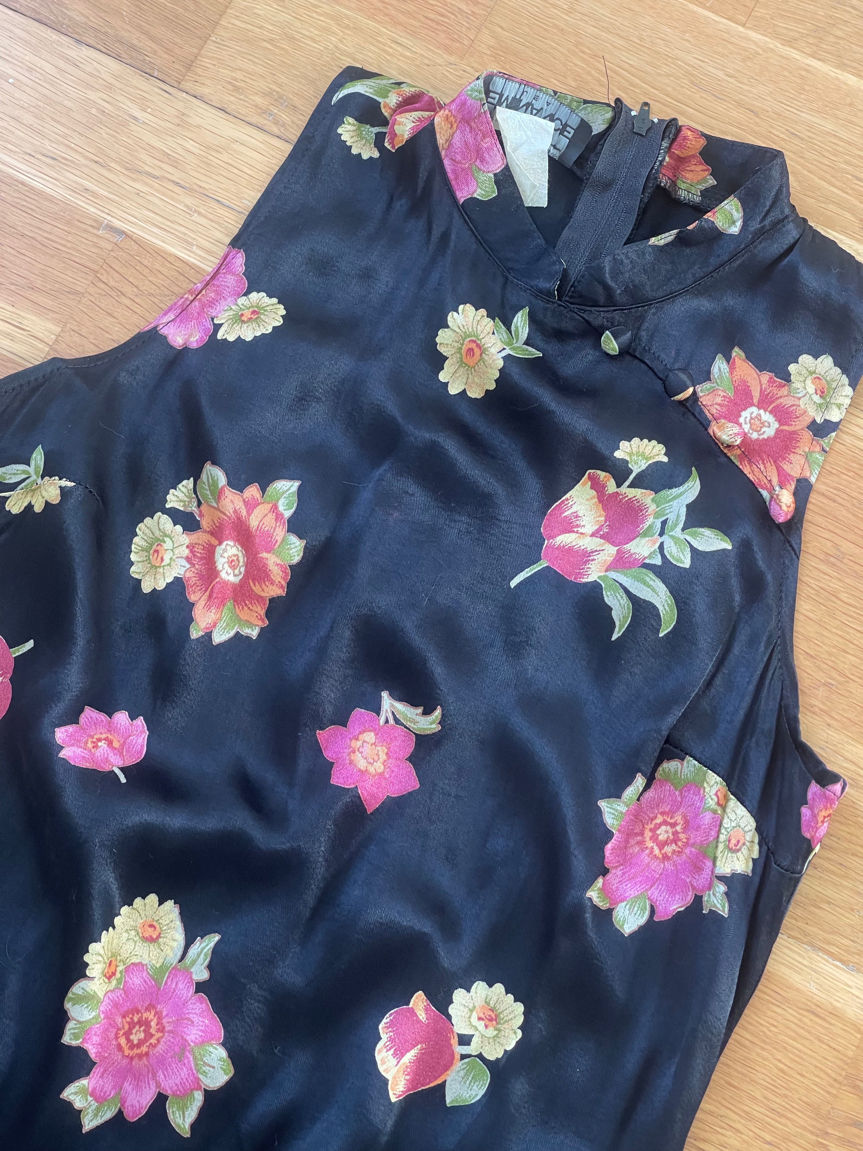 90's Vintage Satin Oriental Style Mini Dress in Pink Floral
