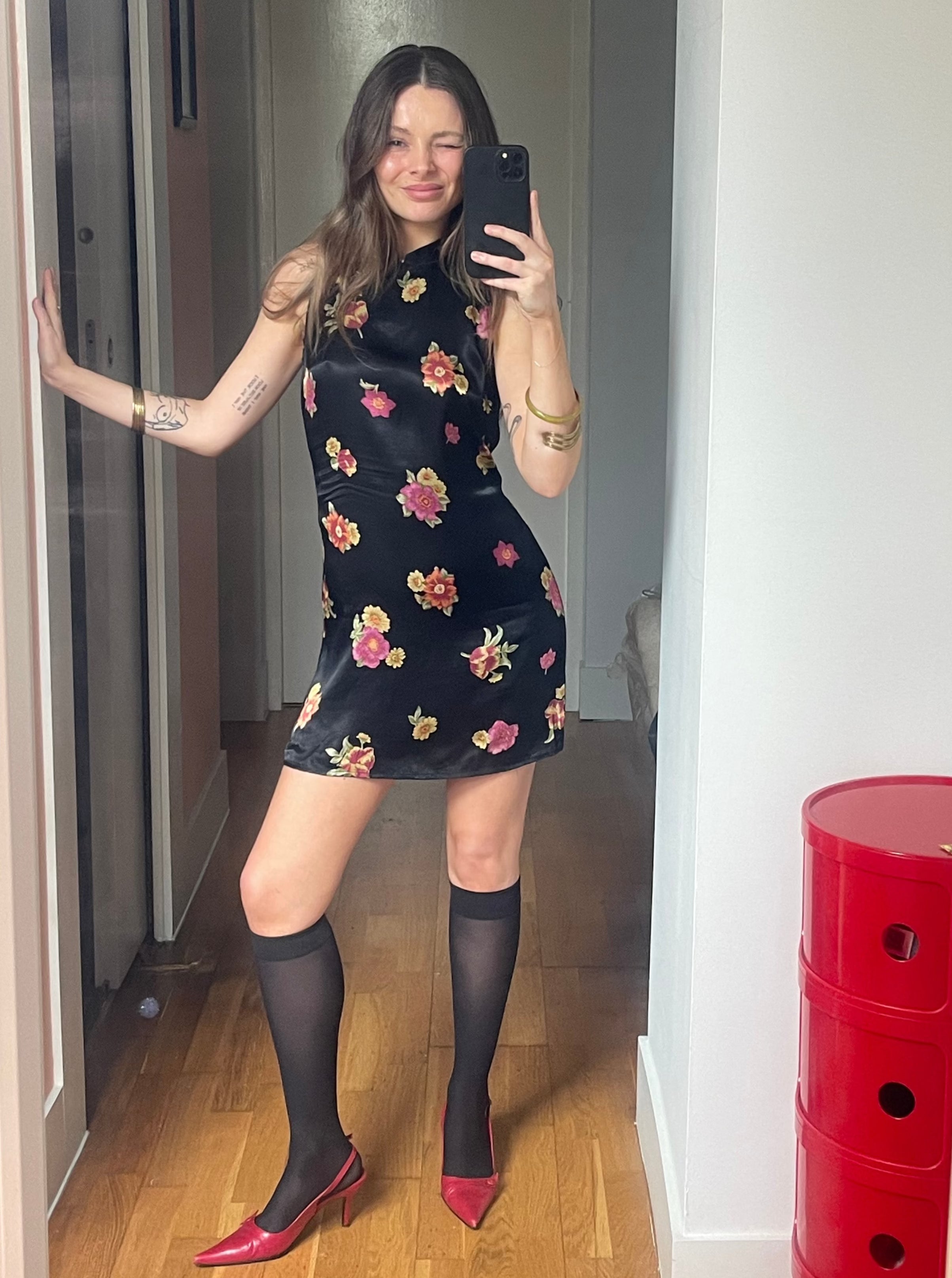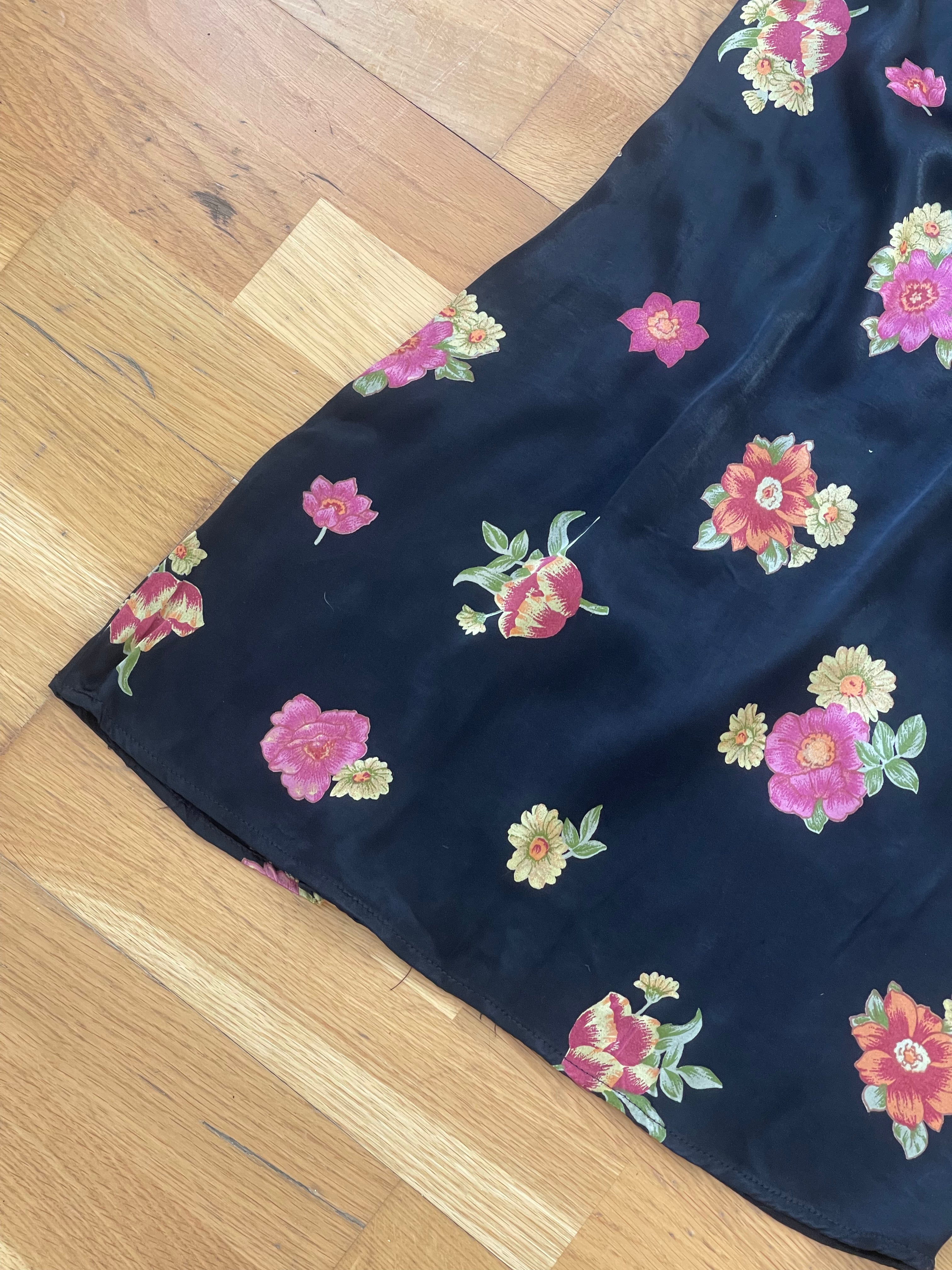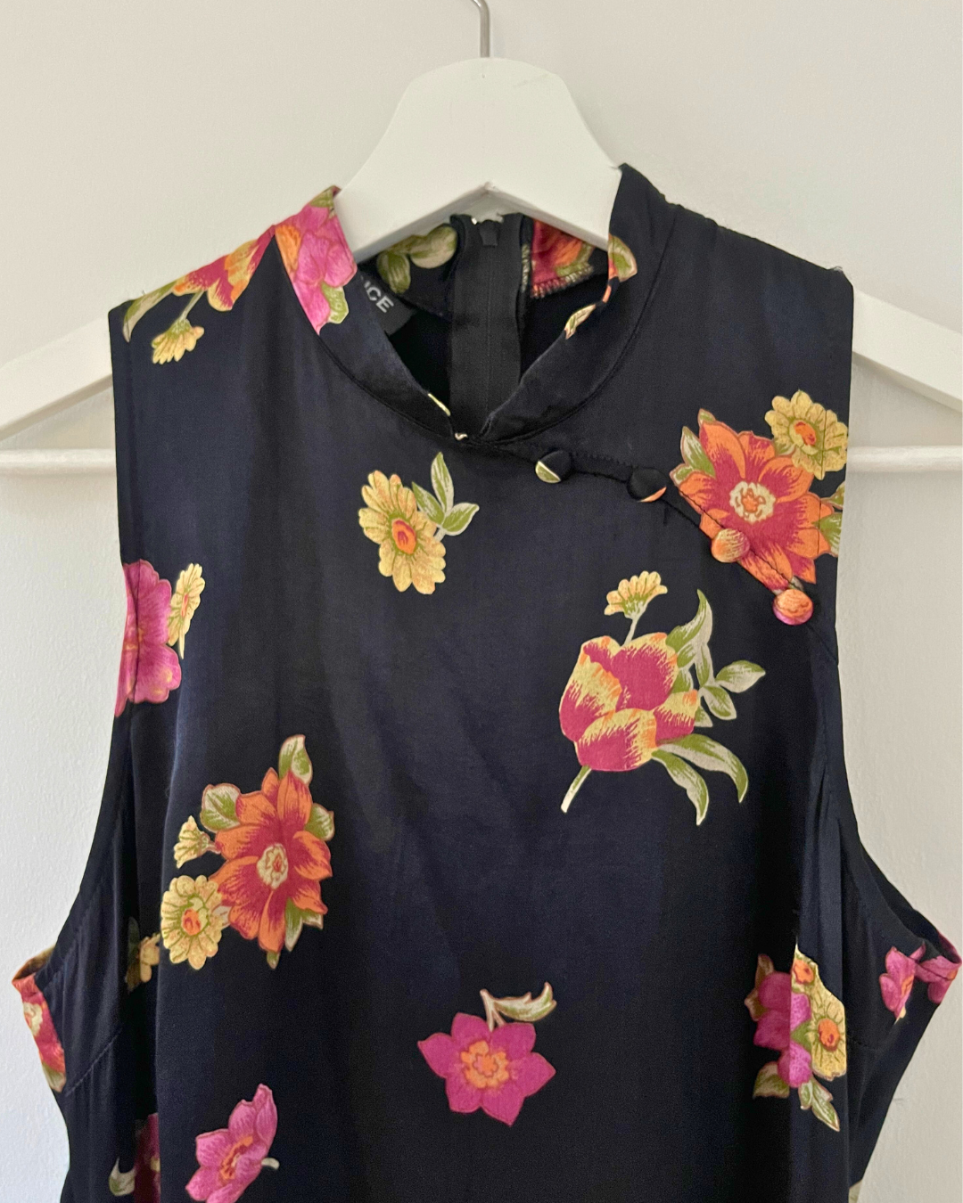 90's Vintage Satin Oriental Style Mini Dress in Pink Floral