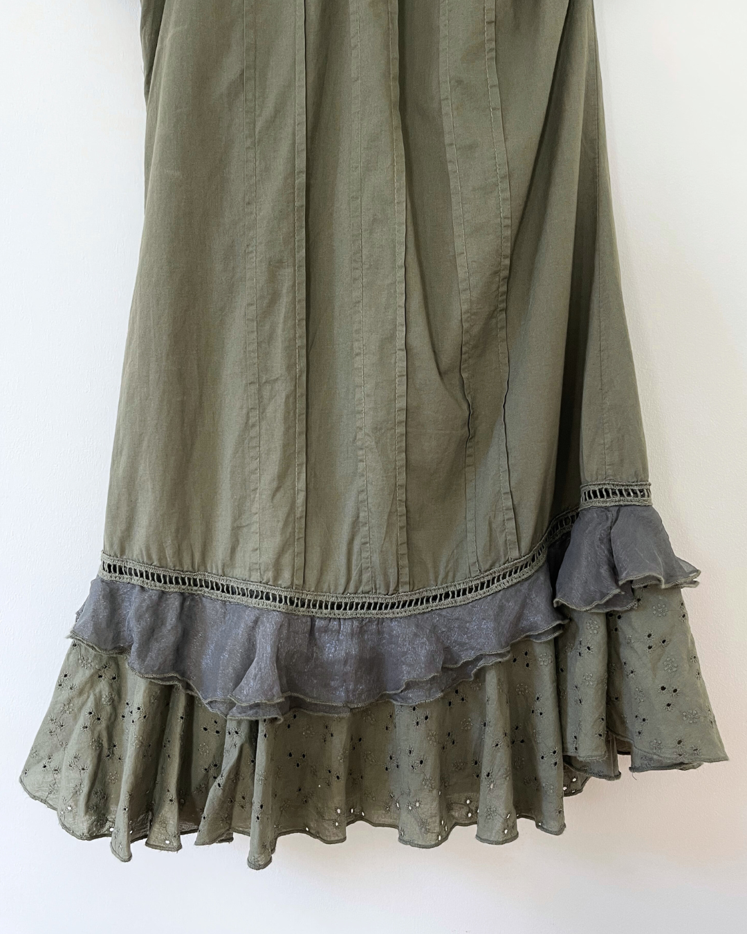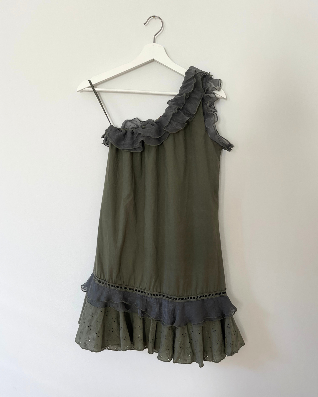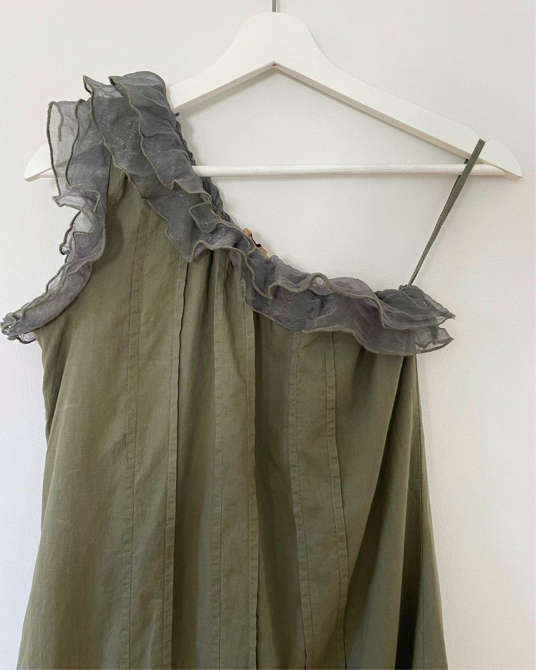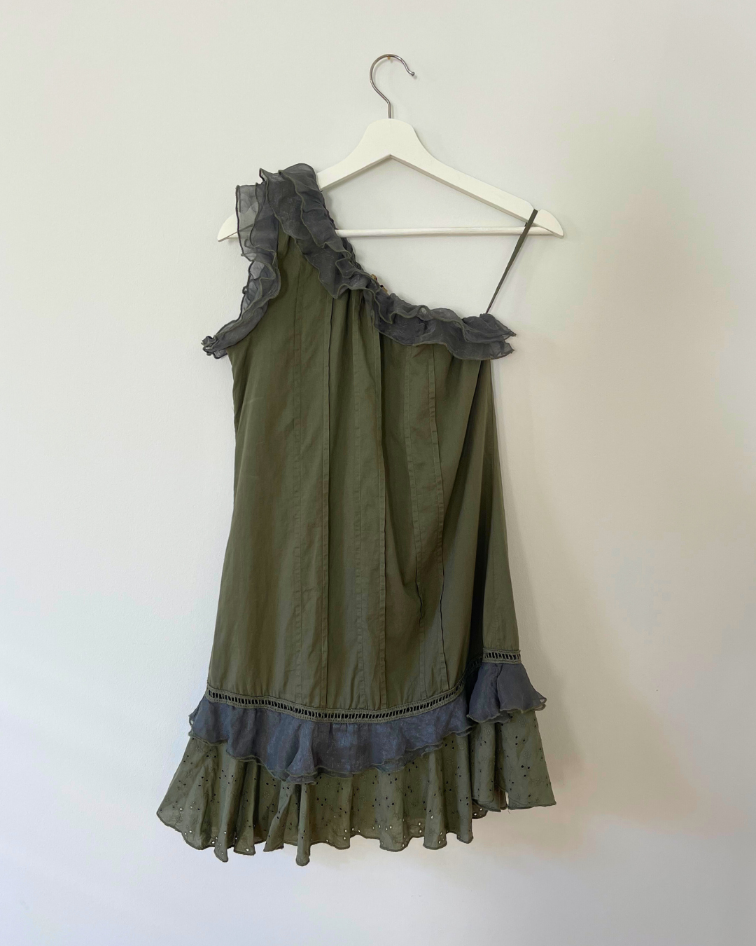 90's Vintage Asymmetric Cotton Panelled Mini Dress in Khaki